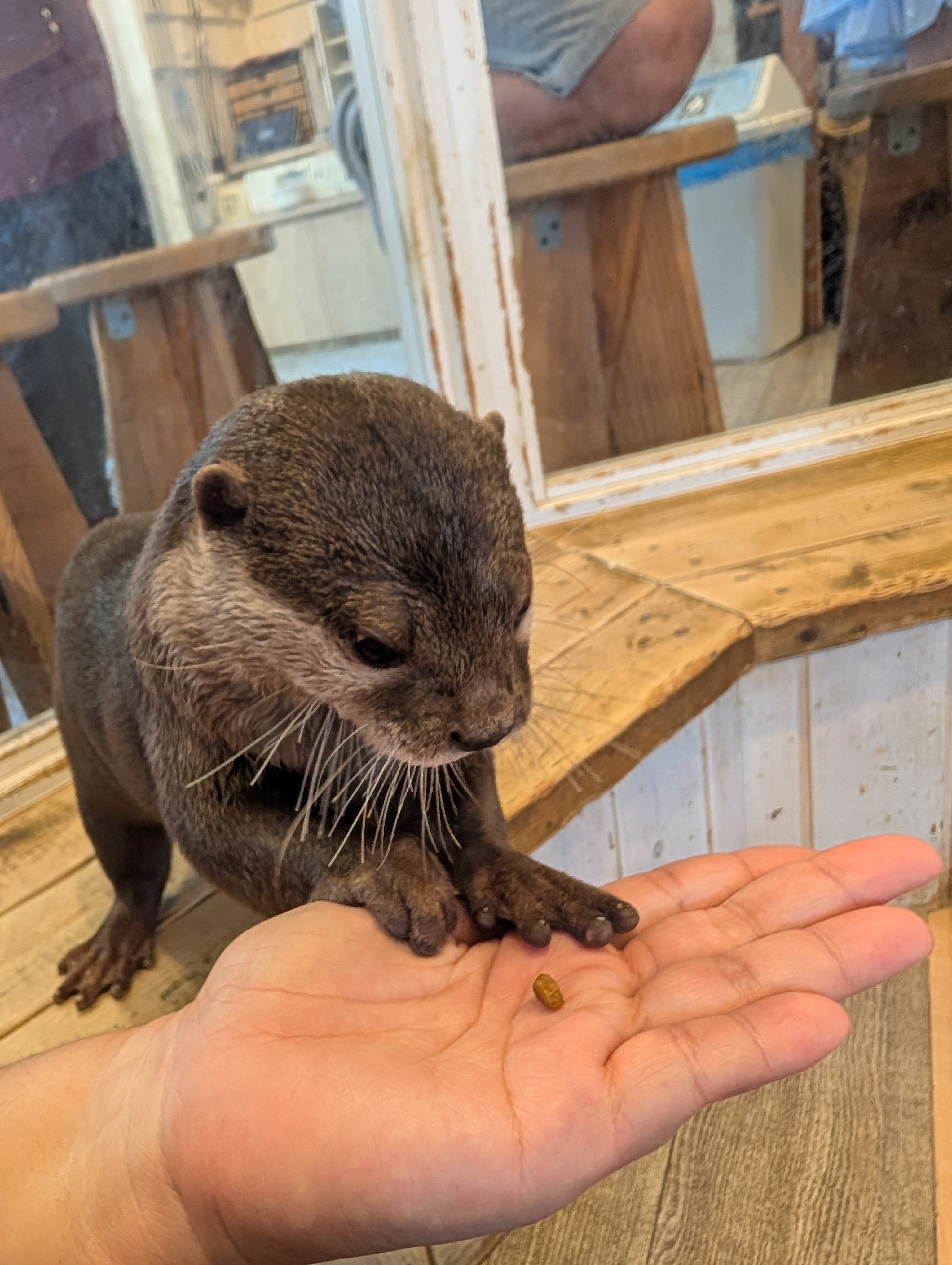 So I missed yesterday and I figured i'll post two photos and they kinda go hand in hand anyway. In japan we went to this place called harry's hedgehog cafe. We played with hedgehogs and otters. https://harinezumi-cafe.com/en/