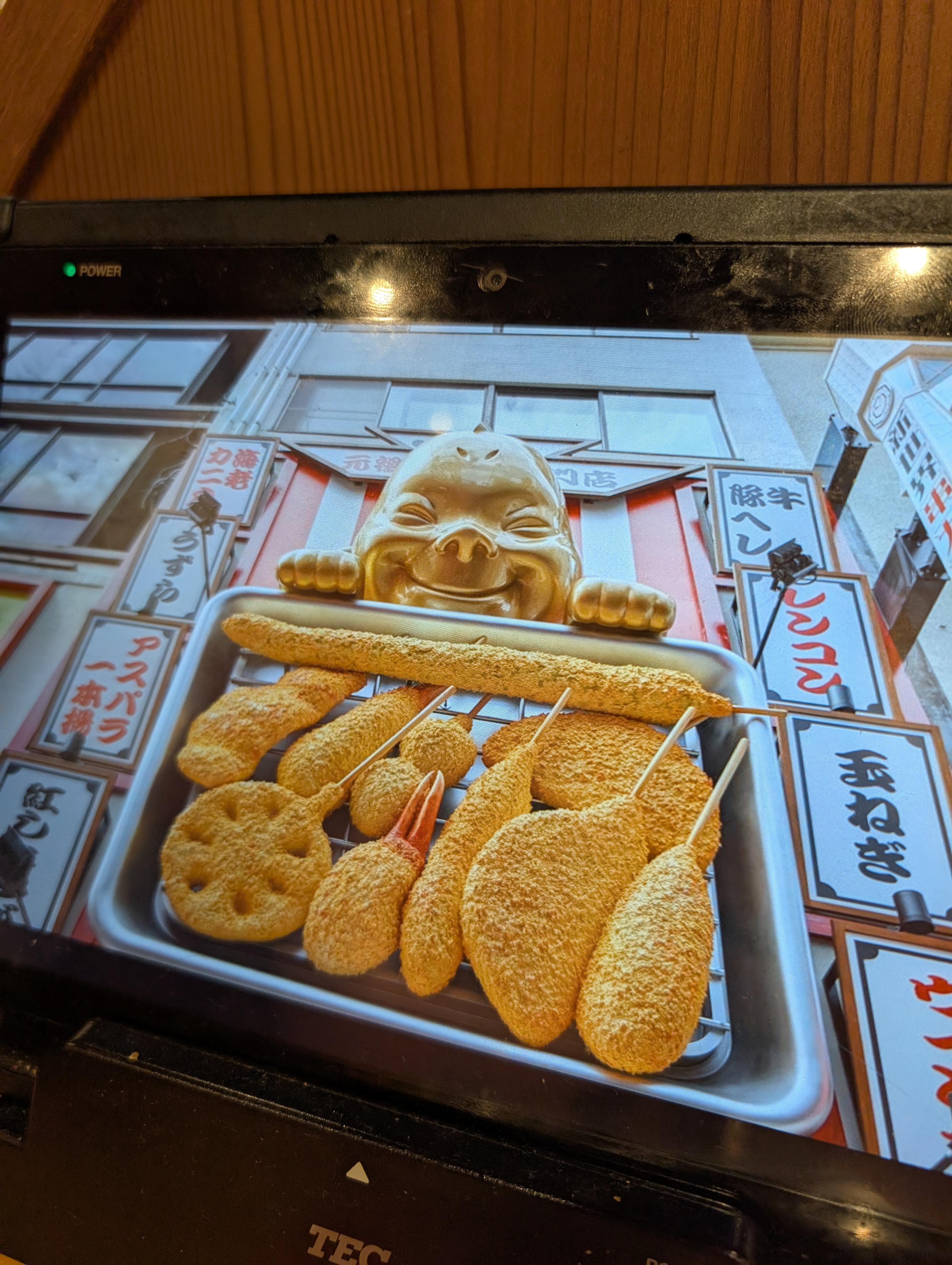 Kushikatsu again a kansai area speciality. It's deep fried food on a stick.