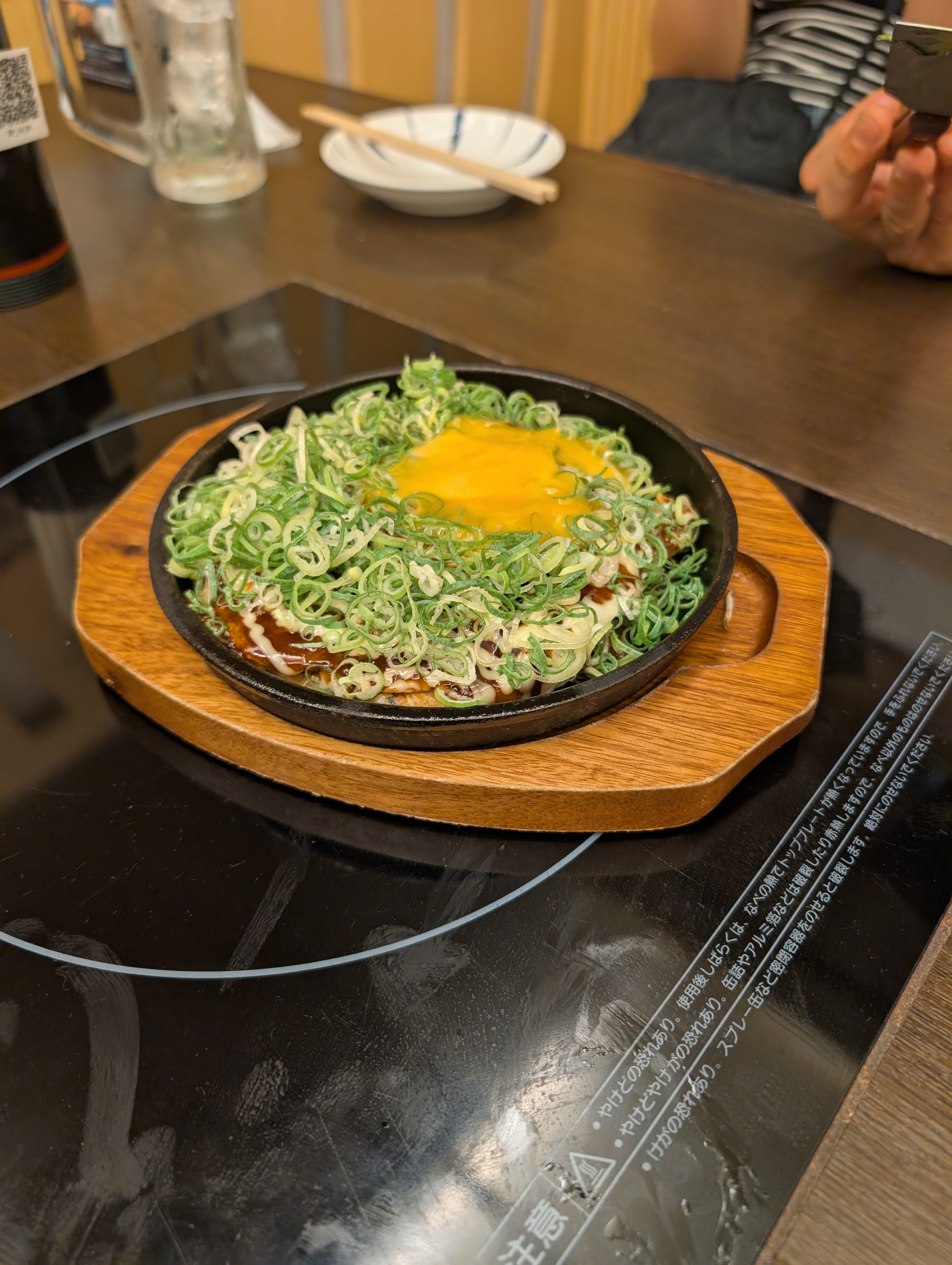 Osaka Kansai traditional Japanese Okonomiyaki. We were eating our way through Japan as my mom said. We mostly did places where they didn't speak english and everyone was a local. My kids thought it hilarious that we walked into random joints that were packed but no tourist and no lines.